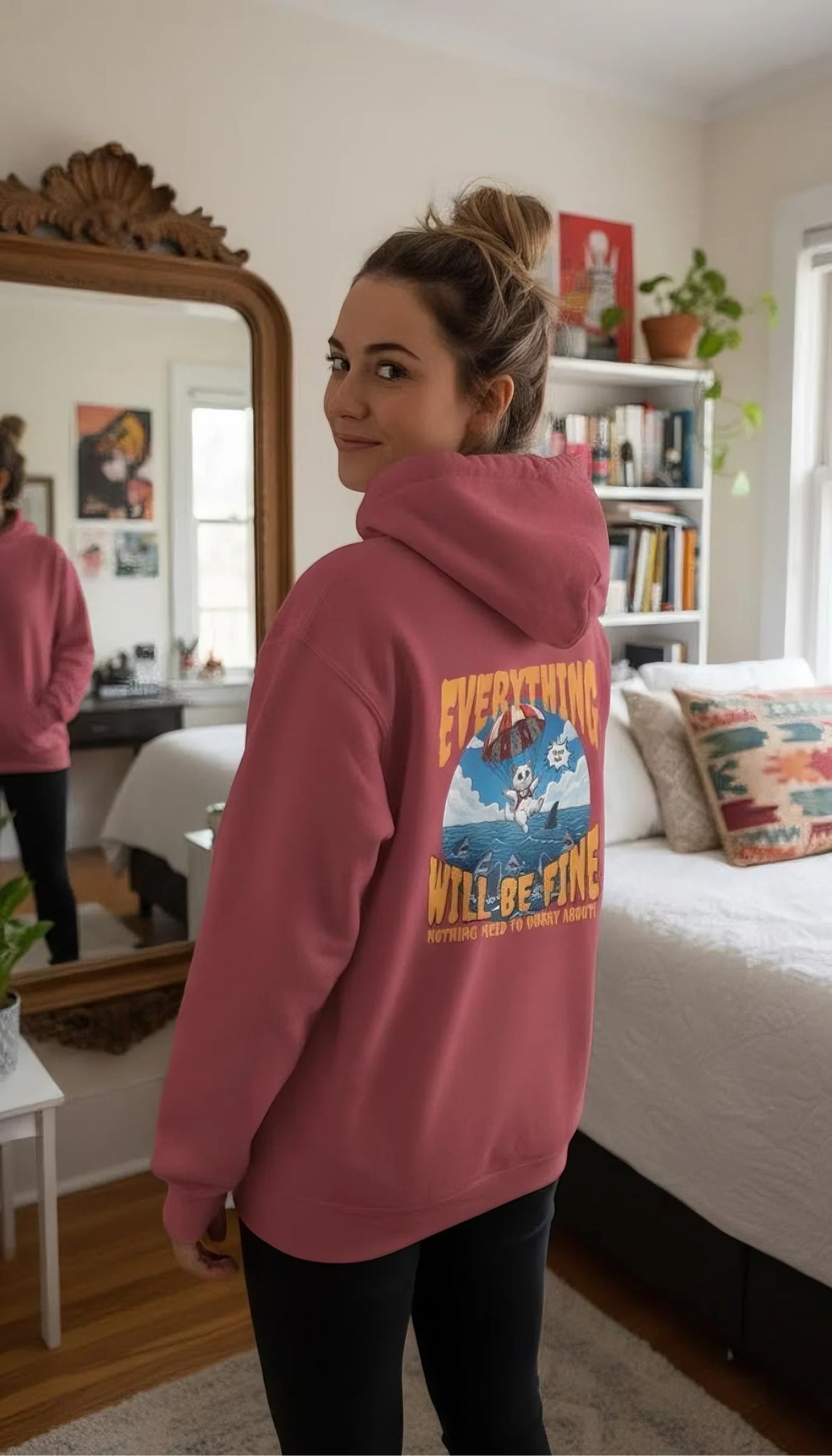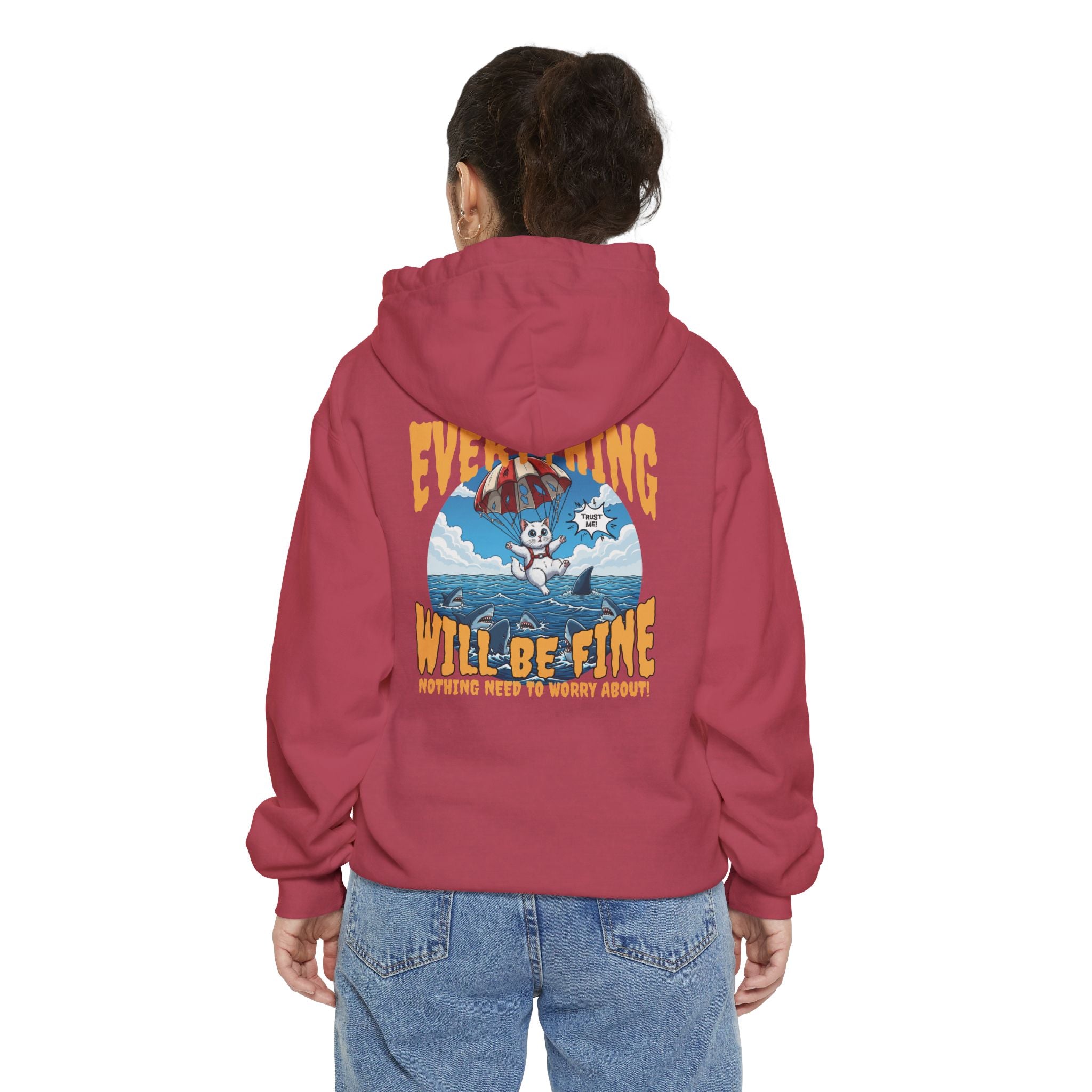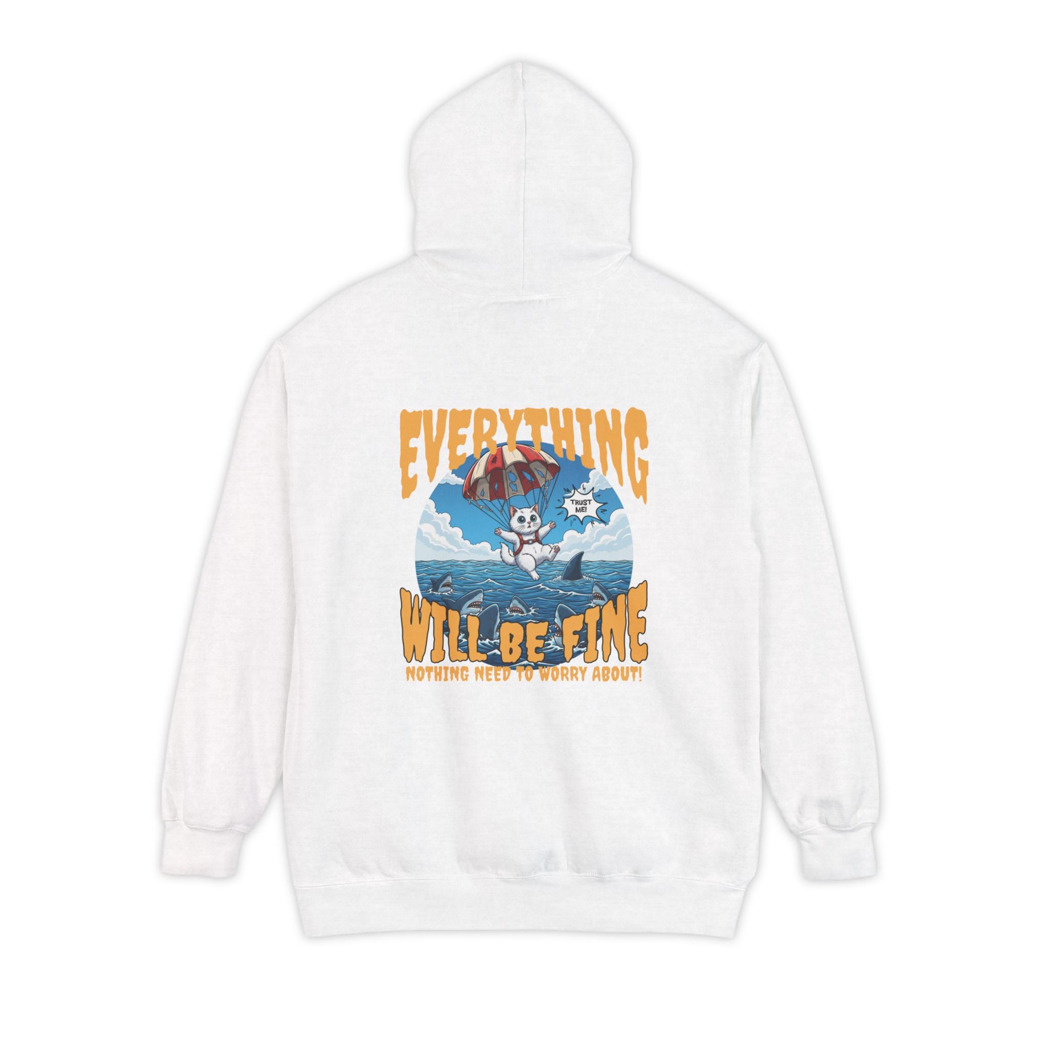 Indulge in comfort with our Cartoon Cat Unisex Pullover Hoodie. Crafted from 80% ringspun cotton and 20% polyester, this heavyweight 9.5 oz garment-dyed hoodie offers a cozy embrace. The bold vintage-inspired landscape print on the back adds character, while the hood, ribbed cuffs, and hem provide warmth and style. Features include jersey-lined hood, self-colored drawstrings, twill neck tape, and half-moon back patch for durability. Perfect for slow mornings, long drives, or a comforting reminder on busy days.