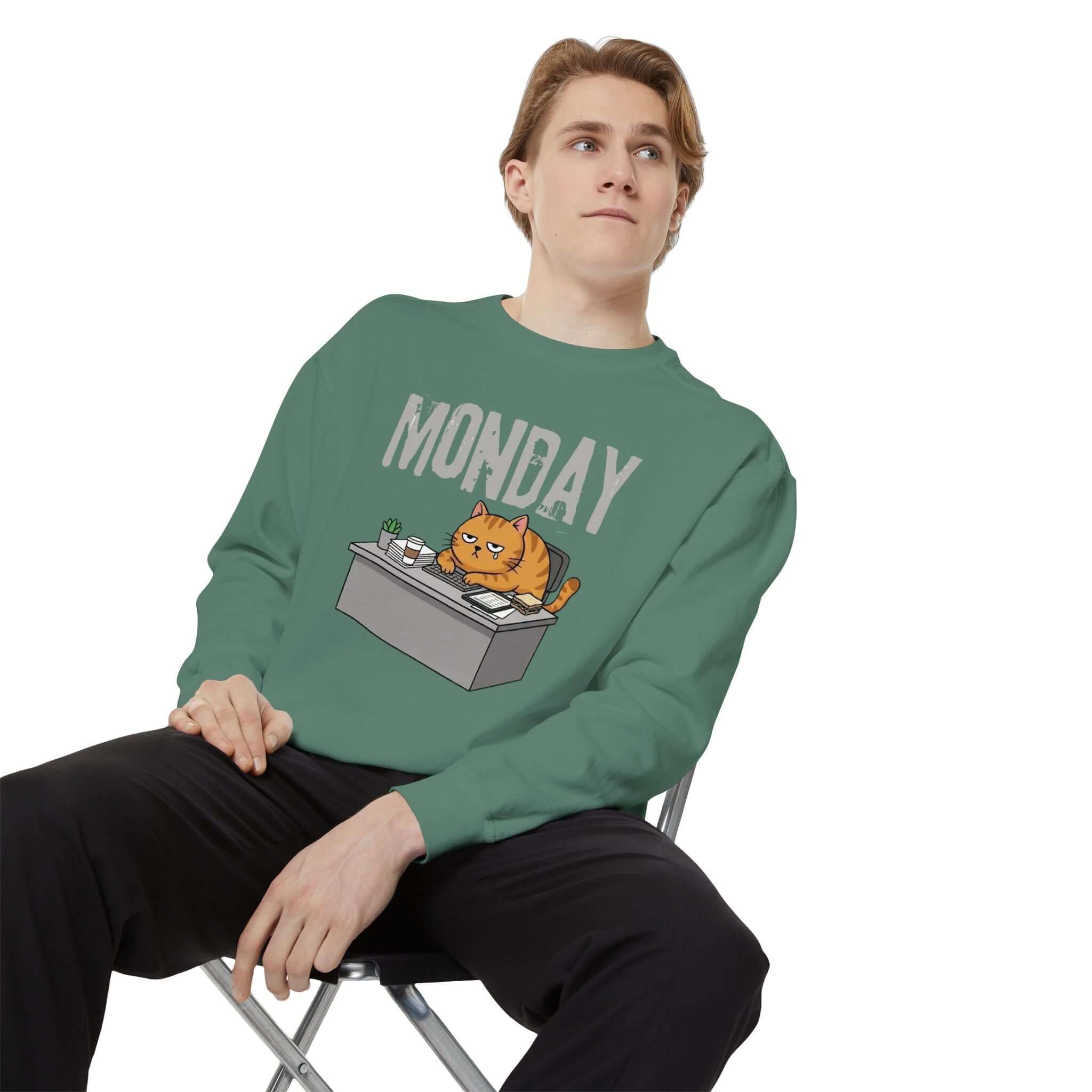 Cat Face Monday Unisex Crewneck Sweatshirt in Relaxed Fit