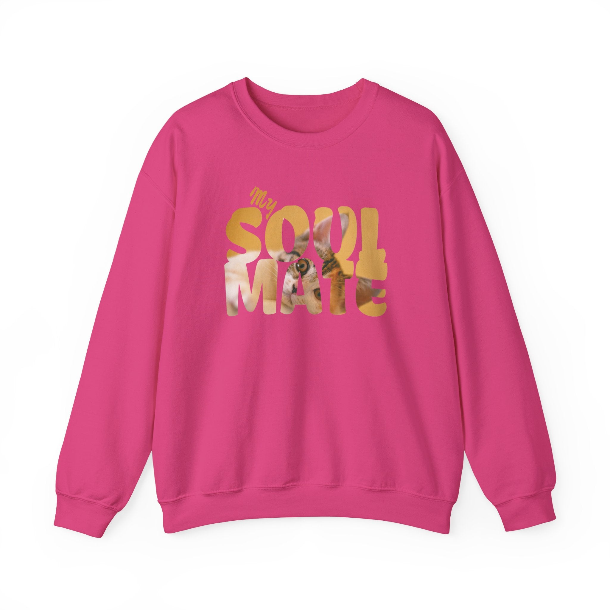Embrace your feline affinity with the Cat Lover My Soulmate Purple Crewneck Sweatshirt. This soft, mid-weight sweatshirt featuresMy SOULMATEin warm, sunlit lettering over a floral backdrop. Ideal for cool mornings or casual outings, the 50/50 cotton-poly blend ensures both warmth and durability. Stay cozy with ribbed collar and cuffs, tear-away labeling for comfort, and responsibly sourced fibers. Whether relaxing at home or enjoying a city stroll, this sweatshirt embodies quiet warmth and sentimental charm. Care instructions: Machine wash cold, non-chlorine bleach, tumble dry low heat, do not iron or dry clean.