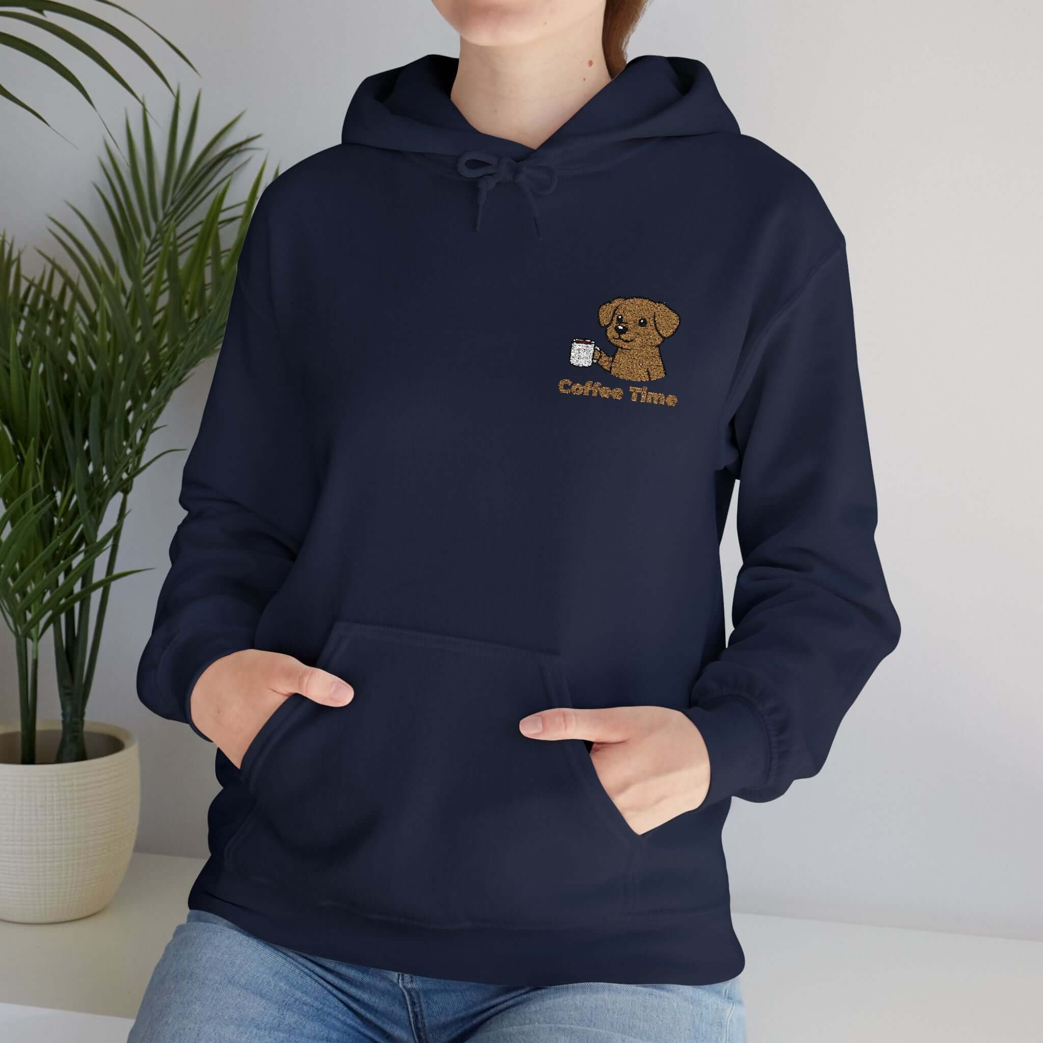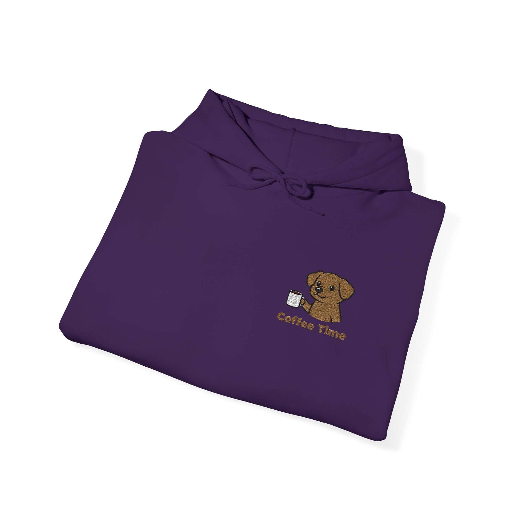 Coffee Time Dog Embroidered Pullover Hoodie – Unisex Style