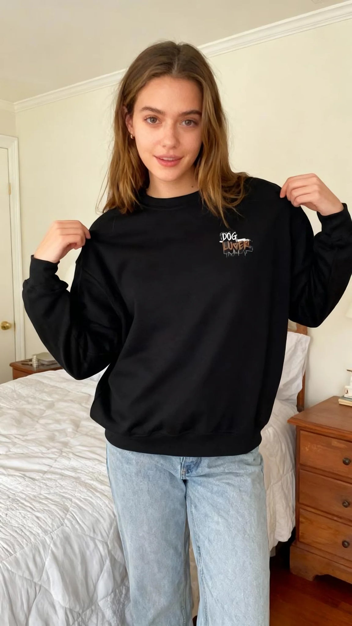 Indulge in comfort with our Cozy Dog Lover Crewneck Sweatshirt in White. Crafted from a medium-heavy 50/50 cotton-poly blend, this sweatshirt provides lasting warmth and durability. The classic crewneck fit features double-needle stitching for added resilience, while the OEKO-TEX certified dyes and US cotton sourcing ensure responsible production. Ideal for layering during cool commutes or casual outings, this sweatshirt offers a timeless style that only gets better with time. Enjoy itch-free comfort with the tear-away label and soft DTF inner prints for a clean finish. Elevate your wardrobe with this staple piece that embodies understated elegance and quality craftsmanship.