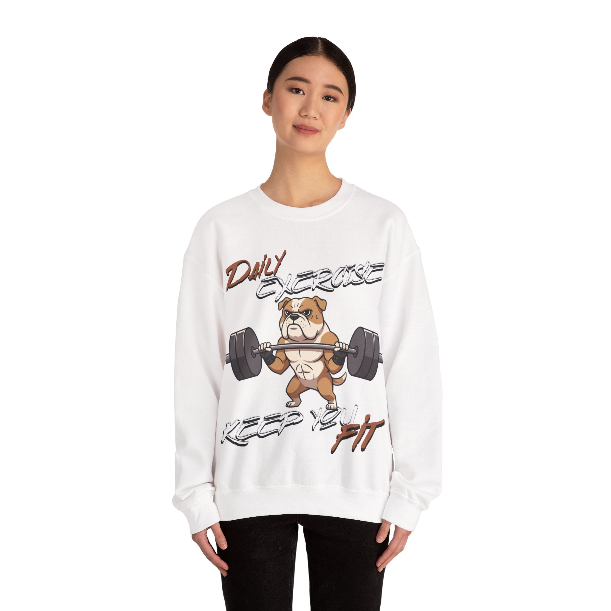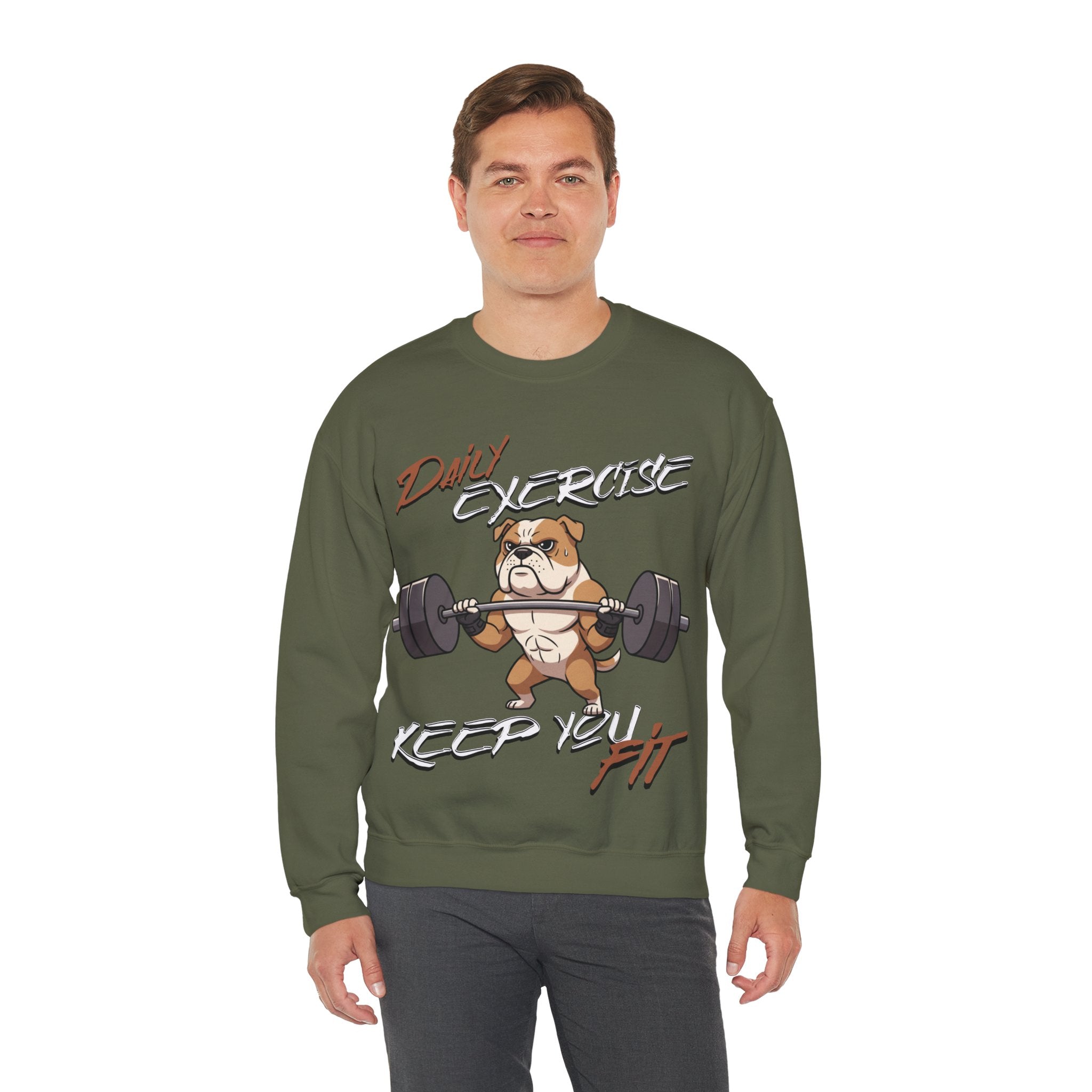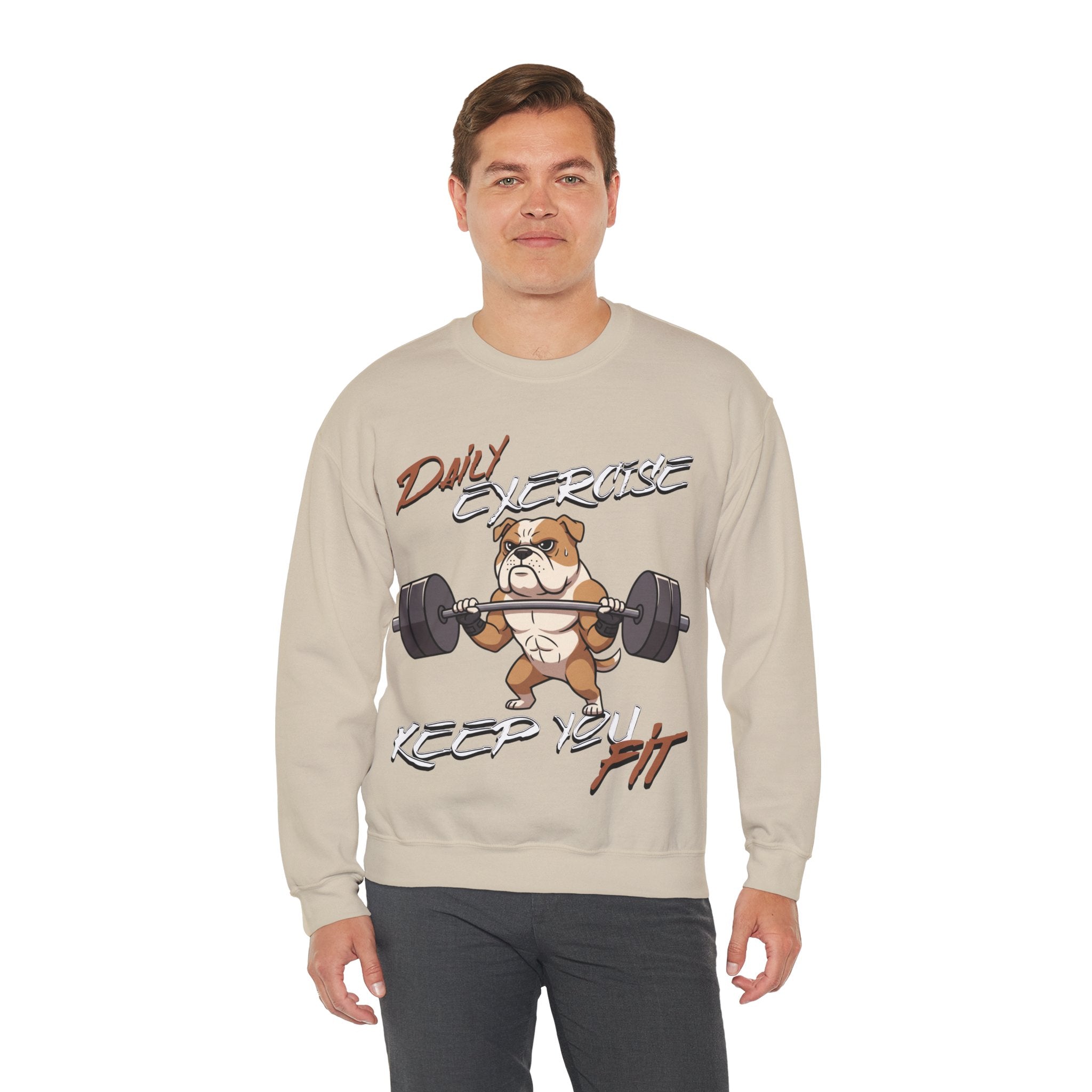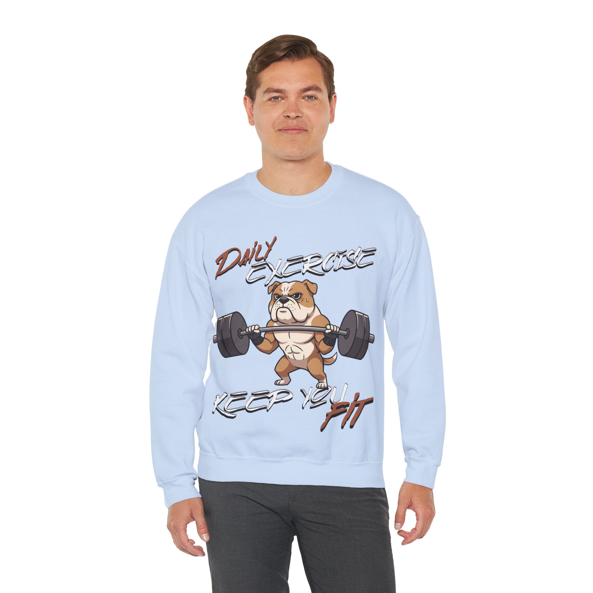 Stay cozy and inspired with our Cute Dog Weightlifting Unisex Sweatshirt, designed for daily workouts. This medium-heavy 50/50 cotton-poly blend ensures warmth and durability, while the ribbed collar and double-needle stitching maintain its shape. Featuring a unique weightlifting dog artwork and motivational mantra, this sweatshirt is perfect for pre-workout mornings, casual wear, or running errands. Made ethically with US-grown cotton and OEKO-TEX dyes, its environmentally friendly too. Machine washable with care instructions included. Available in a variety of sizes and vibrant colors.