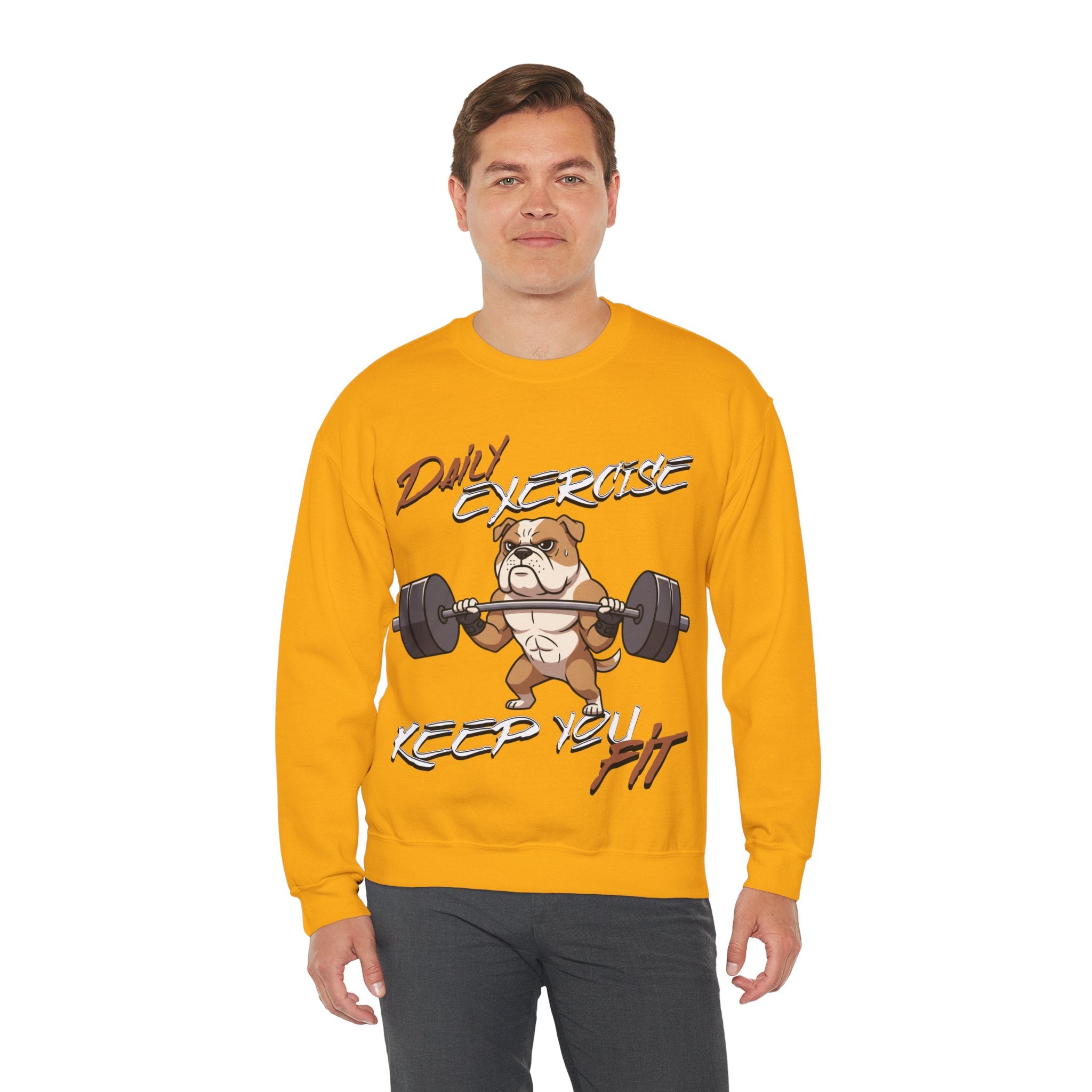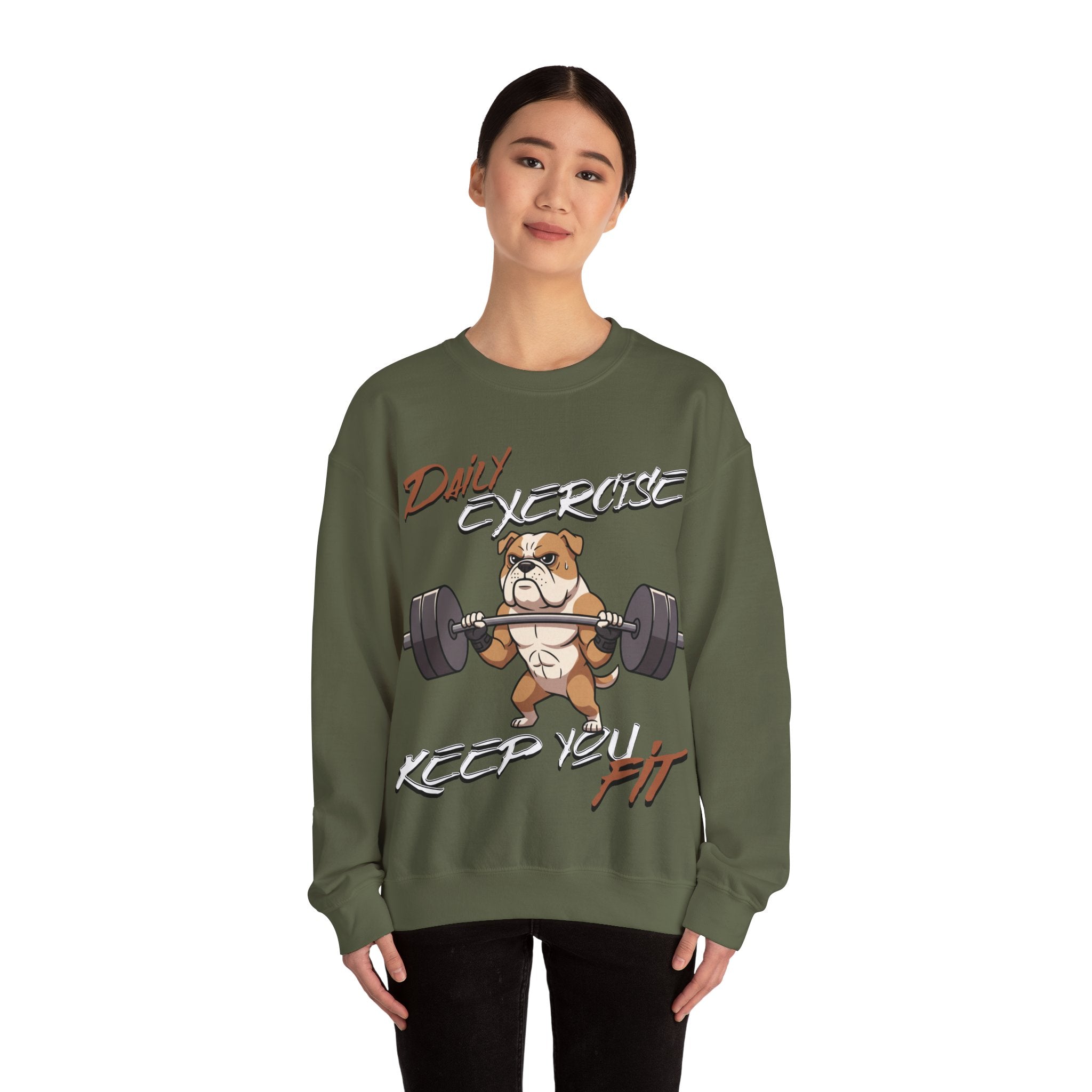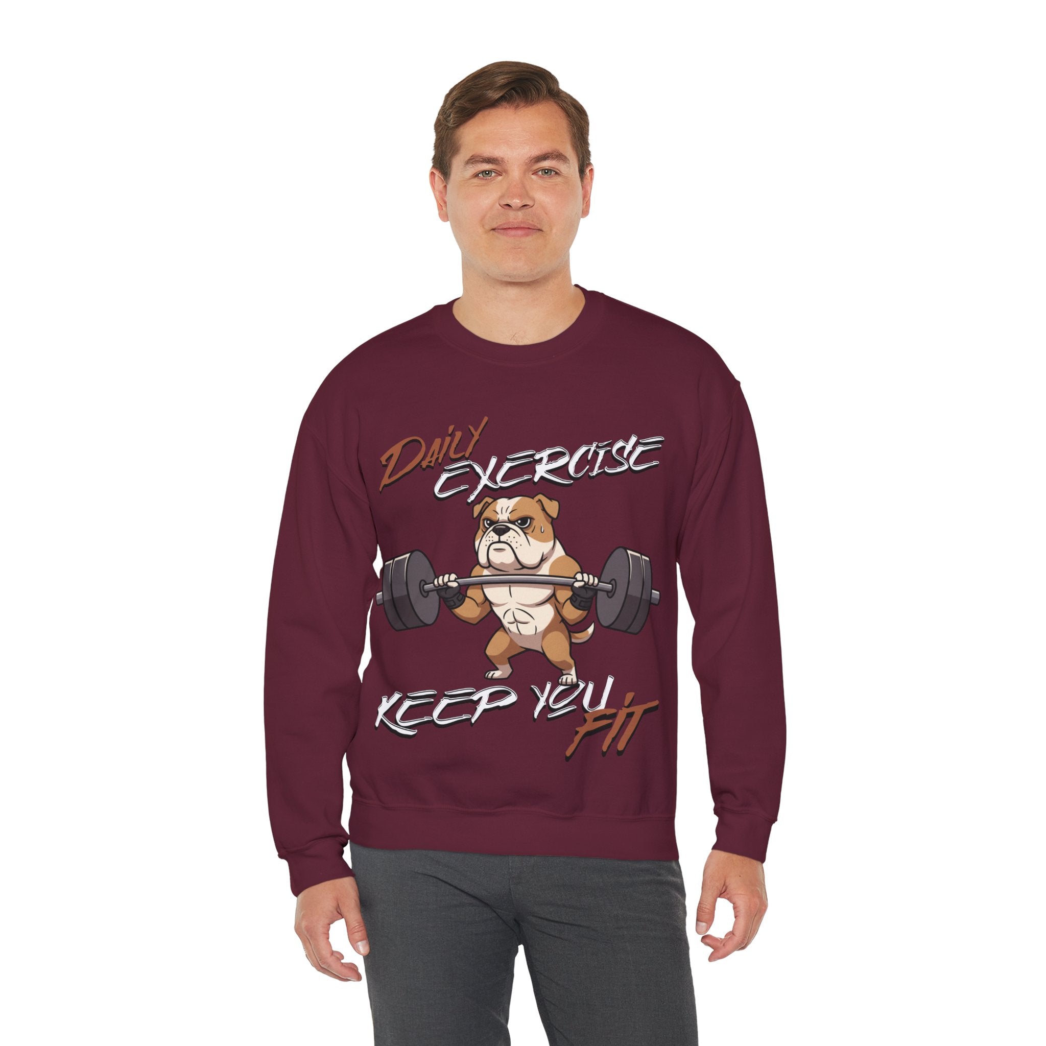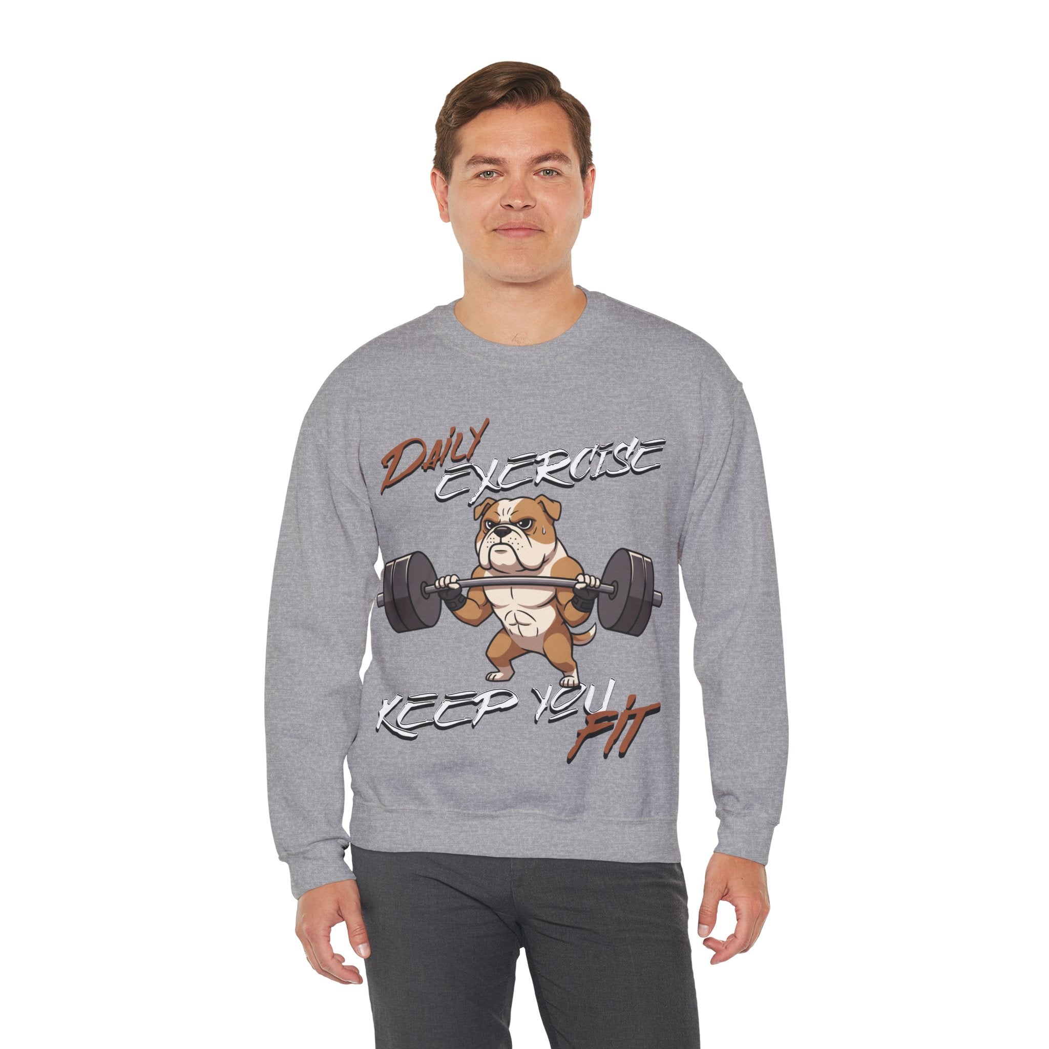 Stay cozy and inspired with our Cute Dog Weightlifting Unisex Sweatshirt, designed for daily workouts. This medium-heavy 50/50 cotton-poly blend ensures warmth and durability, while the ribbed collar and double-needle stitching maintain its shape. Featuring a unique weightlifting dog artwork and motivational mantra, this sweatshirt is perfect for pre-workout mornings, casual wear, or running errands. Made ethically with US-grown cotton and OEKO-TEX dyes, its environmentally friendly too. Machine washable with care instructions included. Available in a variety of sizes and vibrant colors.