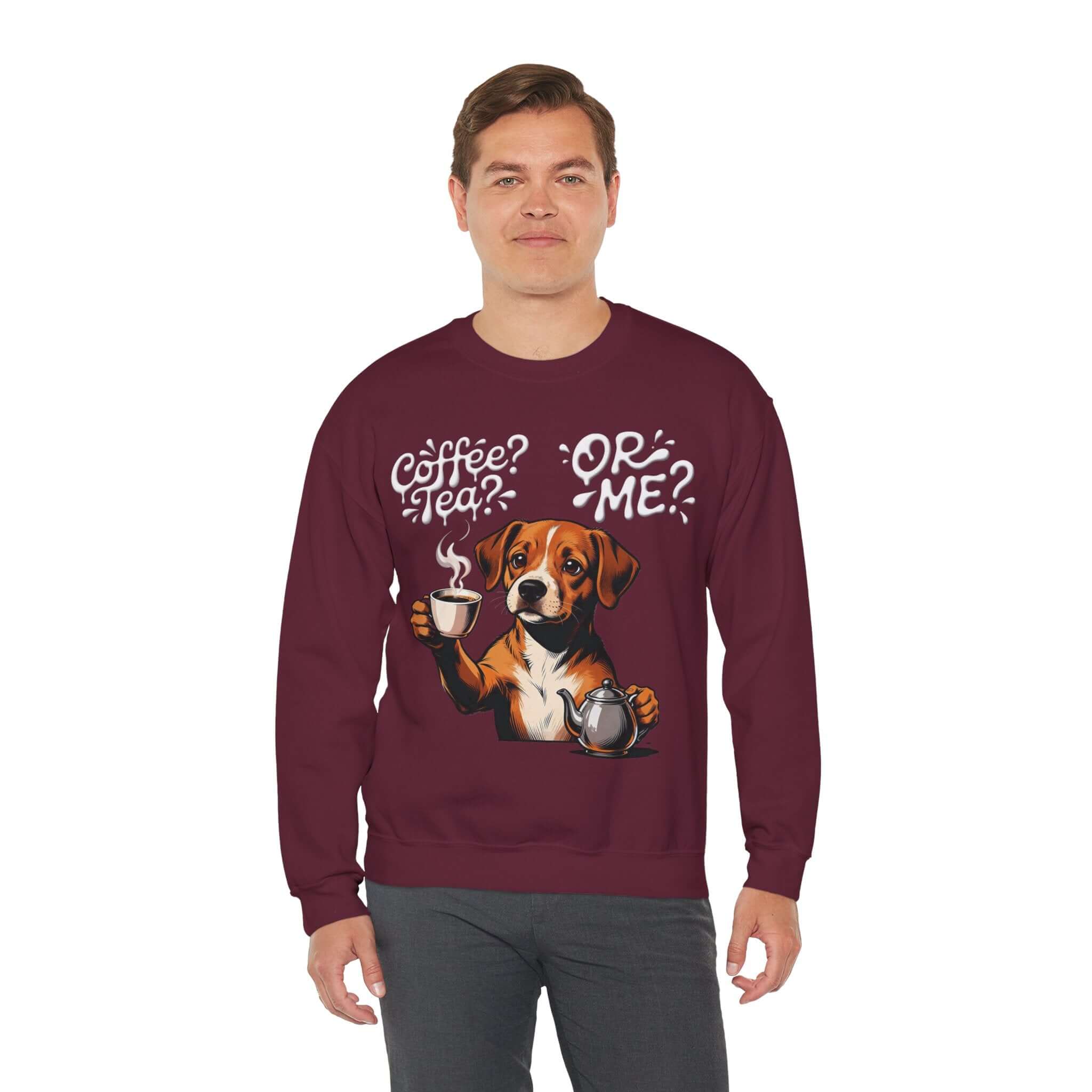 Dog Graphic Unisex Crewneck Sweatshirt – Cozy Coffee Tea Theme