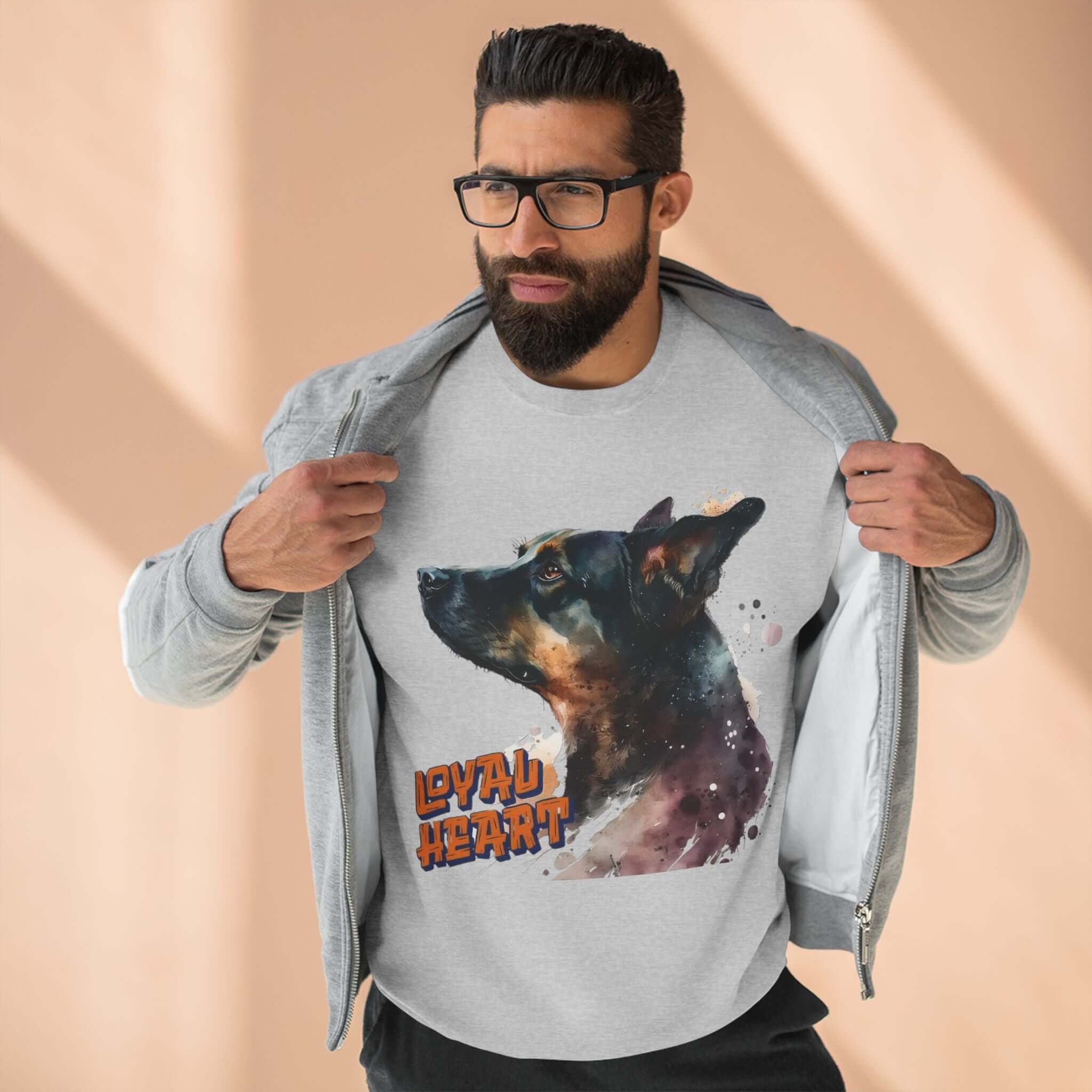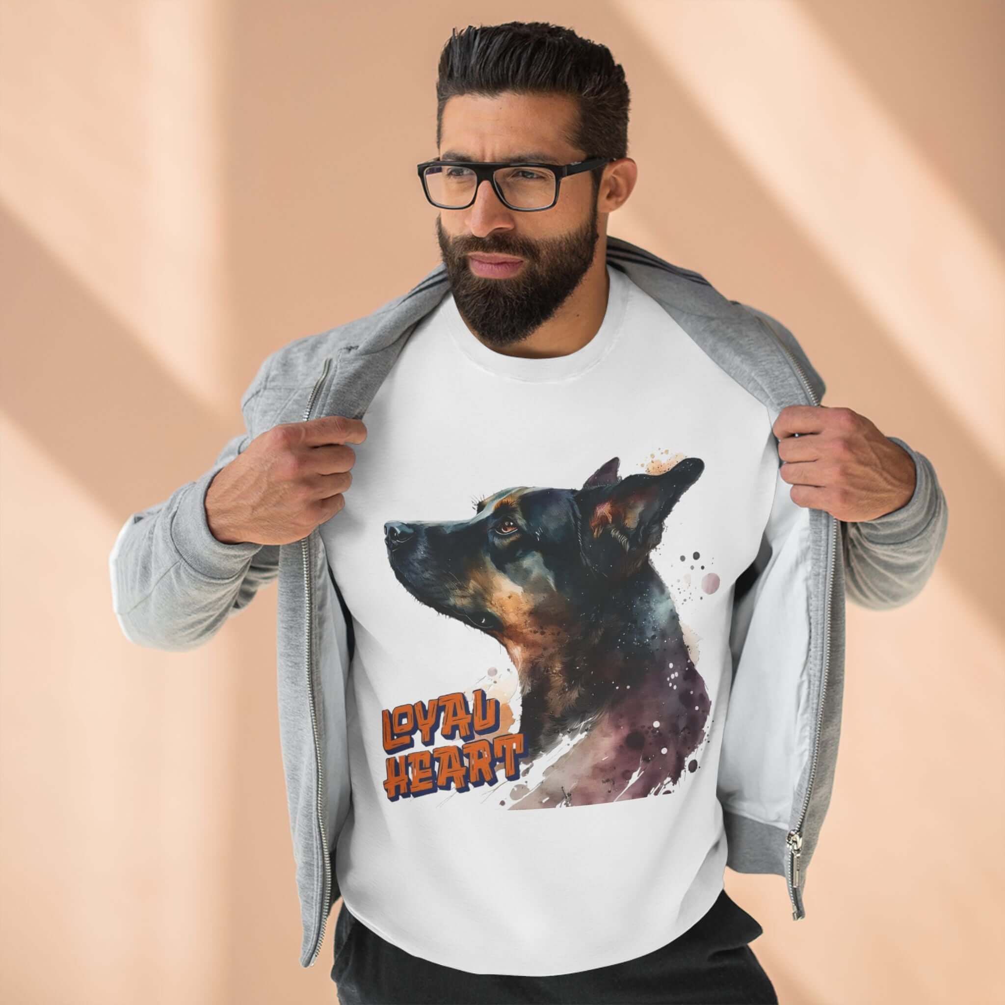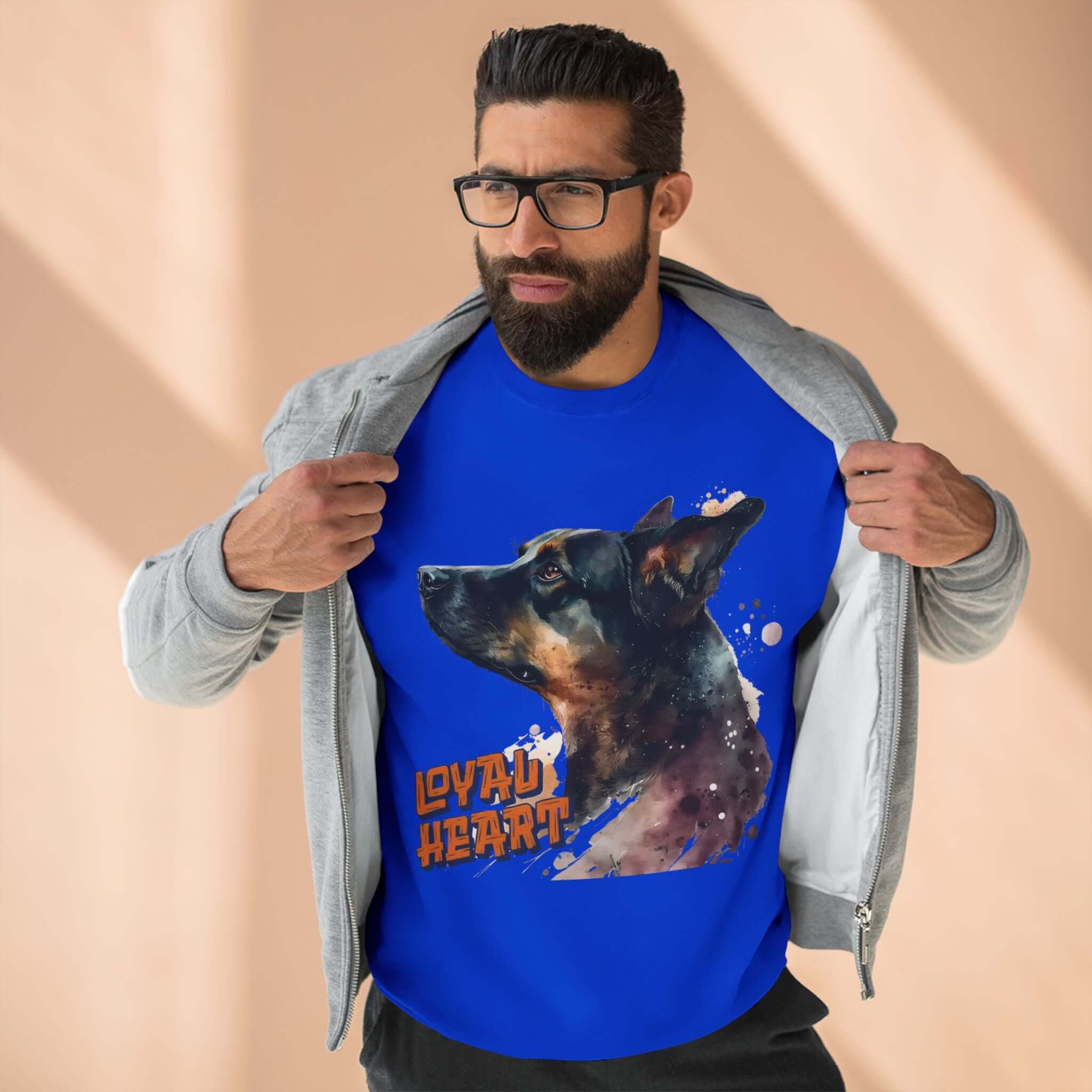 Find your loyal companion in this Dog Lover Crewneck Sweatshirt. Crafted from soft 8.25 oz/yd² fleece with durable 80% cotton and 20% polyester blend. Features ribbed collar, side seams, and a relaxed fit for lasting comfort. Perfect for slow mornings, long walks, or everyday cozy wear. Showcasing a watercolor-style dog portrait for a touch of artistry and charm. Care instructions: machine wash cold, tumble dry low. Available in multiple colors and sizes to suit your style.