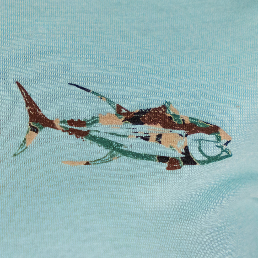 Dusty Blue Camo Print Womens Flowy Crop Tee