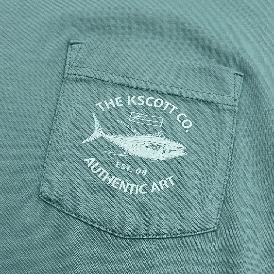 Experience the comfort and style of our Dusty Teal Garment Dyed Pocket T-Shirt. Made from 100% Ringspun Cotton, this premium tee features softer shades and finishes for a lived-in vintage look and feel. Enjoy the tagless design for ultimate comfort. With a regular fit and 5.0 oz weight, this tee is true to size. Please anticipate a 3-5 Business Day wait before your order ships.