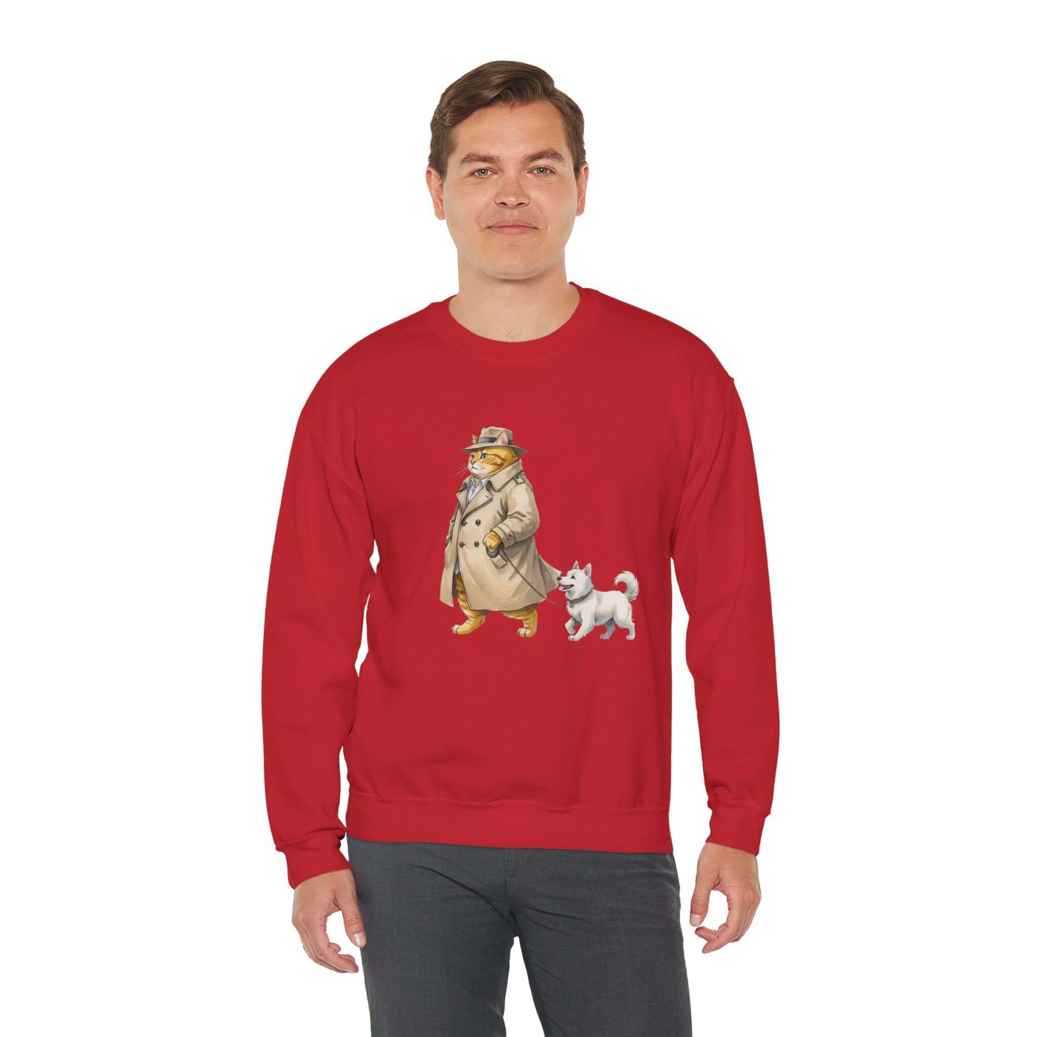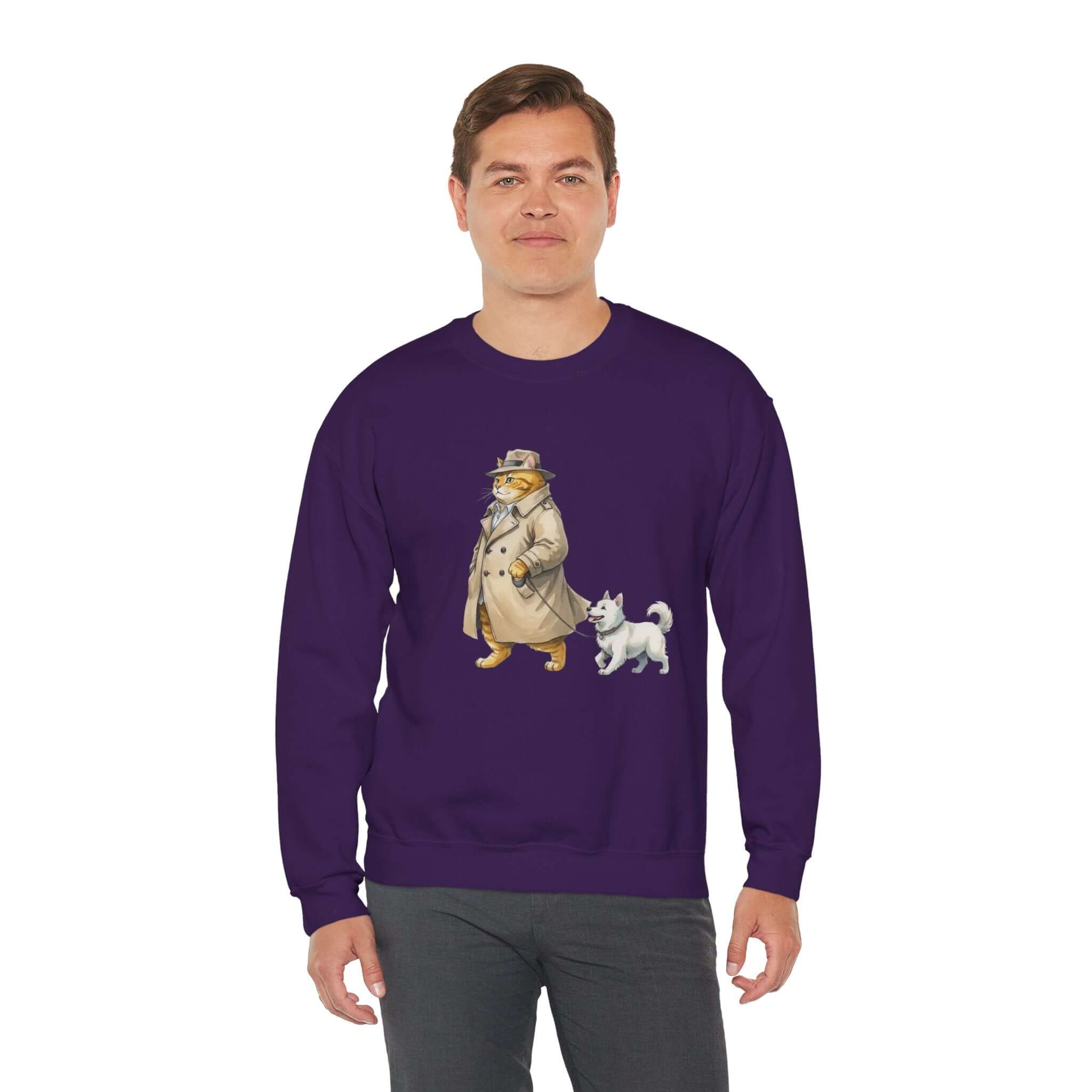 Experience the soft warmth of our Watercolor Cat & Dog Crewneck Sweatshirt style 2. Crafted from a mid-weight 50/50 cotton-poly blend for breathable comfort. This unisex sweatshirt features tubular knit for a smoother fit, durable double-needle stitching, and ethical OEKO-TEX dyes. Whether youre enjoying a cup of tea or lounging on a rainy day, this sweatshirt provides both coziness and style. Available in various sizes and colors to suit your preference.