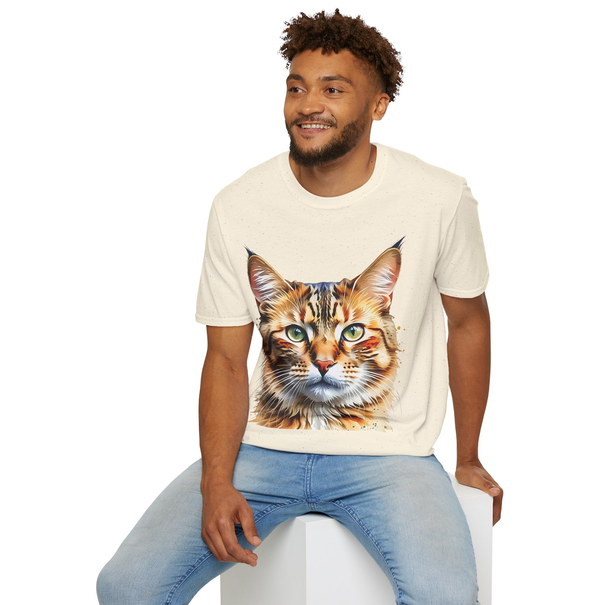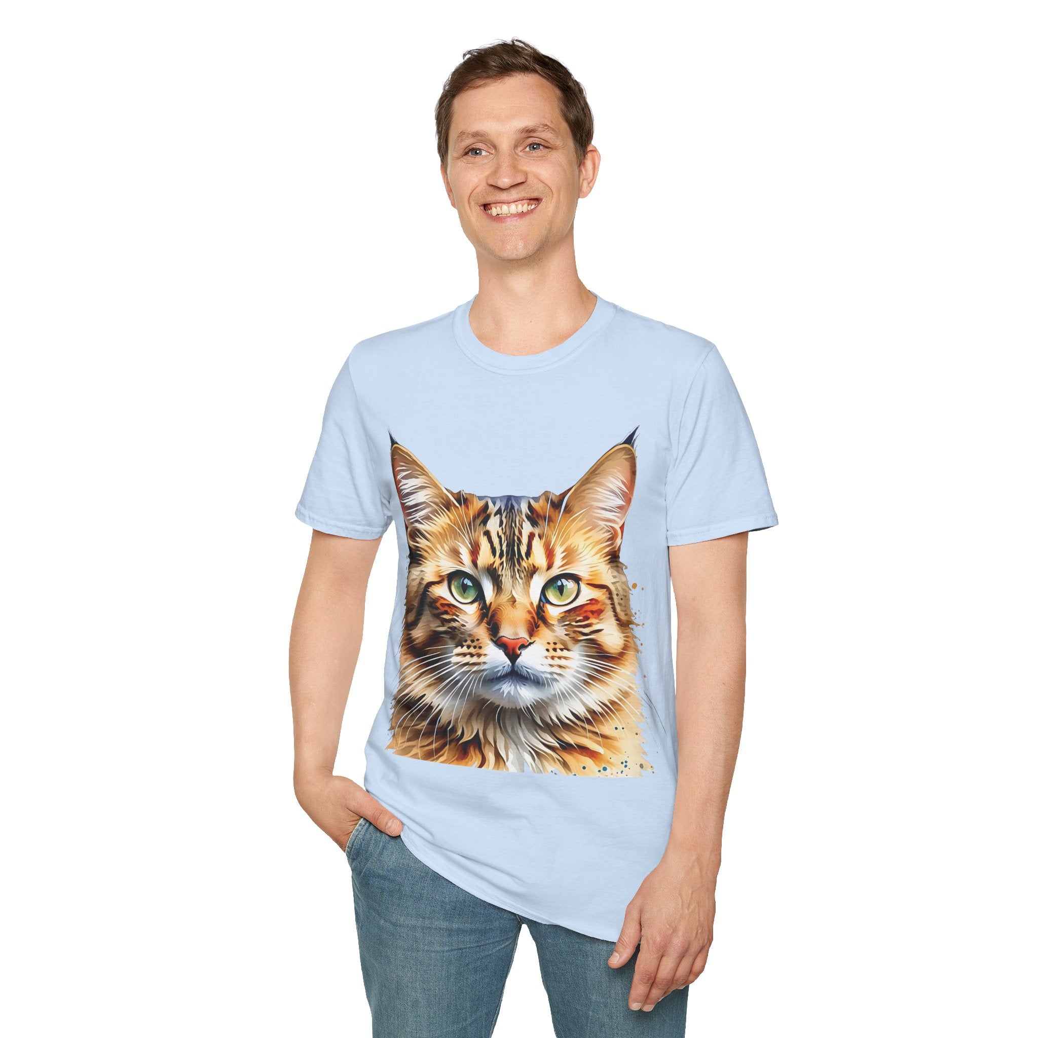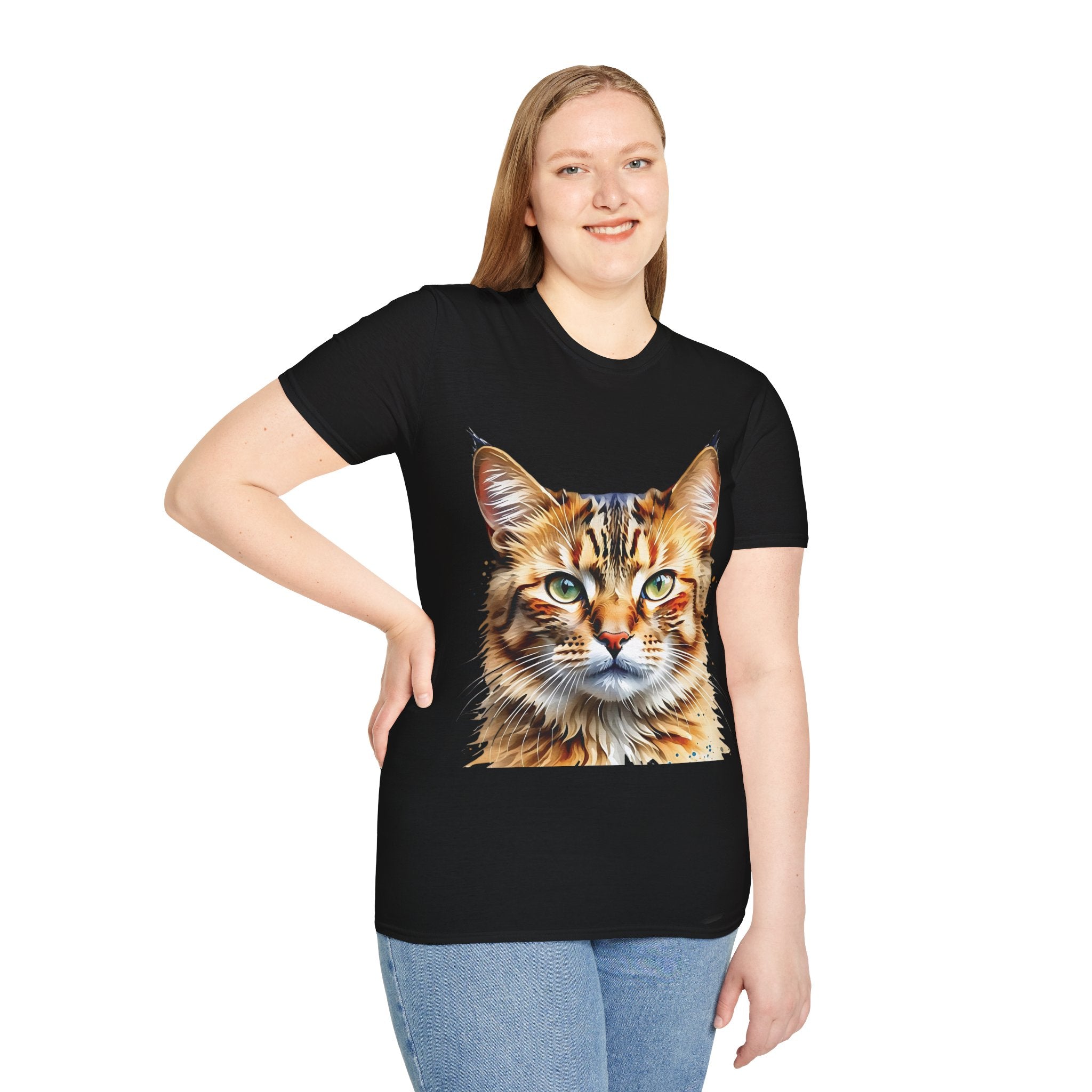Indulge in the artistic charm of our Watercolor Cat Portrait Unisex Cotton T-Shirt. This lightweight shirt features a vivid painterly cat illustration with warm amber eyes and layered fur tones, creating a captivating effect. Perfect for animal lovers and art enthusiasts, this shirt seamlessly integrates into your daily life, invoking a sense of coziness and companionship. Crafted from 100% ring-spun cotton for a soft and breathable feel, this shirt boasts a clean silhouette, ribbed collar, and Oeko-Tex certification for comfort and safety. Wear it on various occasions, from relaxed weekends to casual outings, and make a subtle yet striking statement.