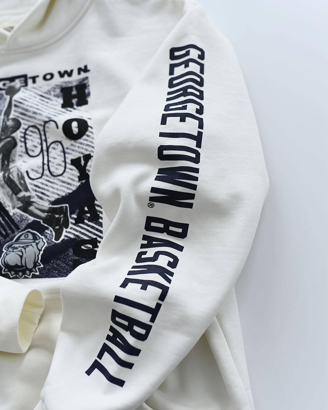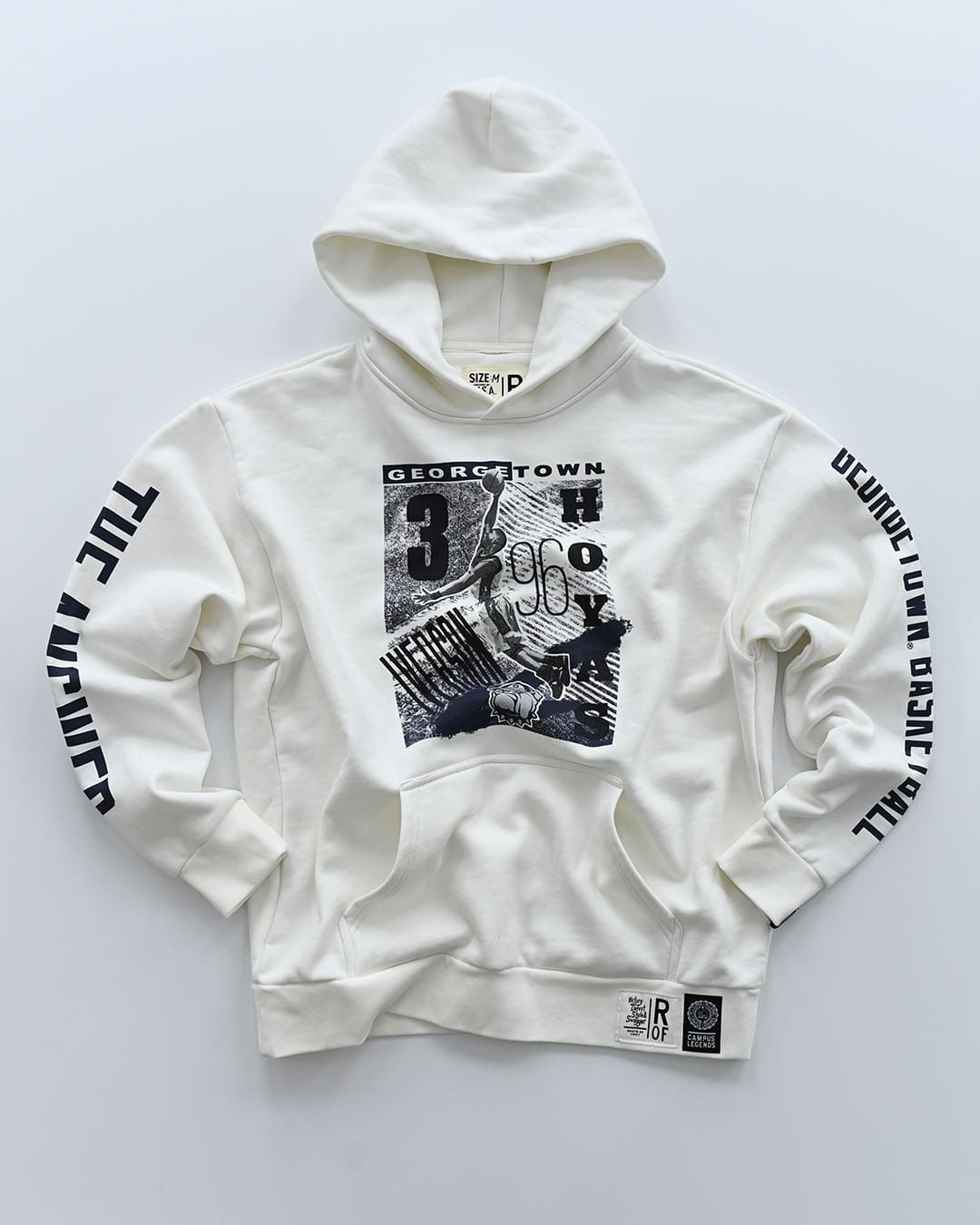 Celebrate Allen Iversons legacy with this officially licensed White Heavyweight Pullover Hoody . Designed with an oversized fit, dropped shoulders, and chenille badge, this hoody offers both style and comfort. Stay warm with its double layer hood, rib knit cuffs and hem. Get yours today and embody the spirit of the game-changer Iverson was on and off the court.